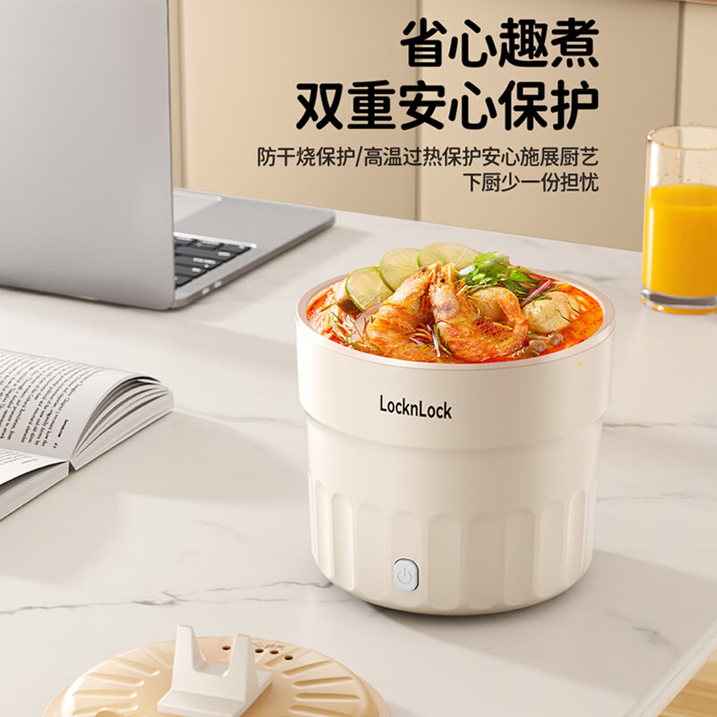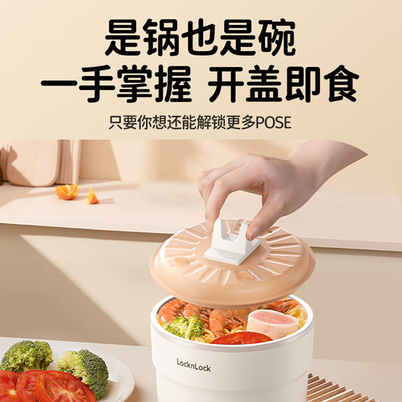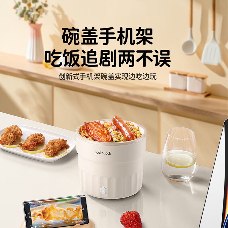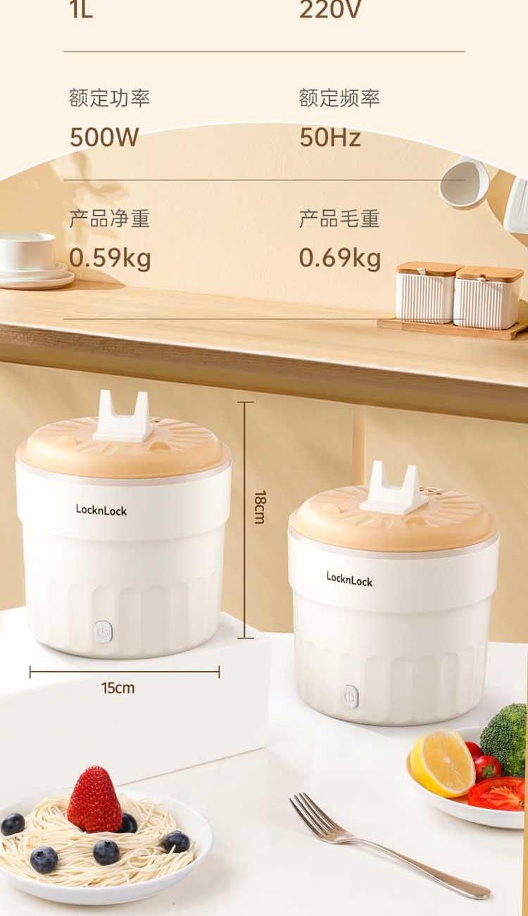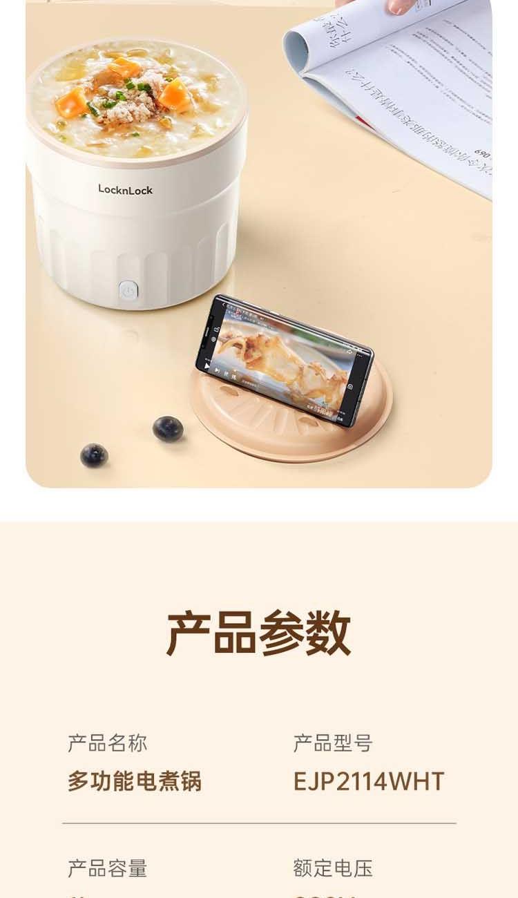 防烫隔热,耐用装满也能轻松提起 不粘内胆,采用陶瓷釉内胆,易清洁 1升加深锅体设计,可满足1人至多人份量 500W速煮功率,涮煮焖炖,美味快速搞定 一机多用,锅盖可变身手机支架