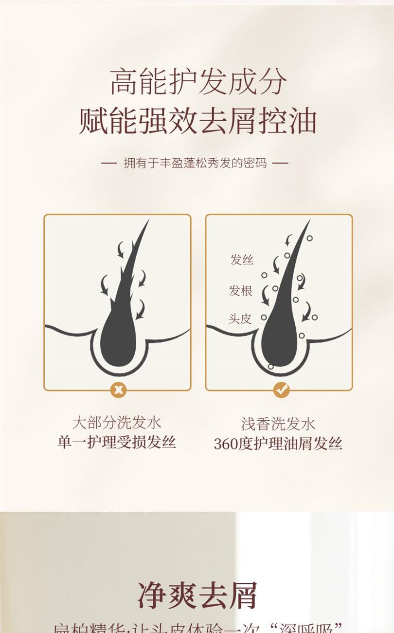 ● 适合发质:油性头屑 ● 主要功效:净爽去屑:日本扁柏精华让头皮体验一次“深呼吸”; 直击根源改善头皮环境;重建头皮微生态; 呵护头皮:去屑不伤头皮,头皮清爽无屑