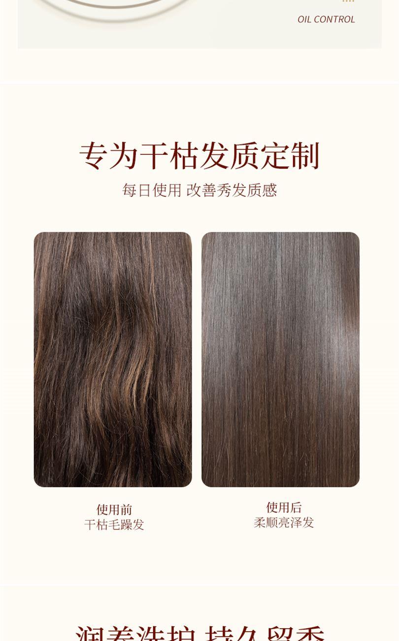 ● 适合发质:双效修护受损发质 ● 主要功效:润泽头皮:滋润头皮和发丝 改善毛躁:锁住营养成分 温和呵护秀发: 每一滴安全不刺激头皮