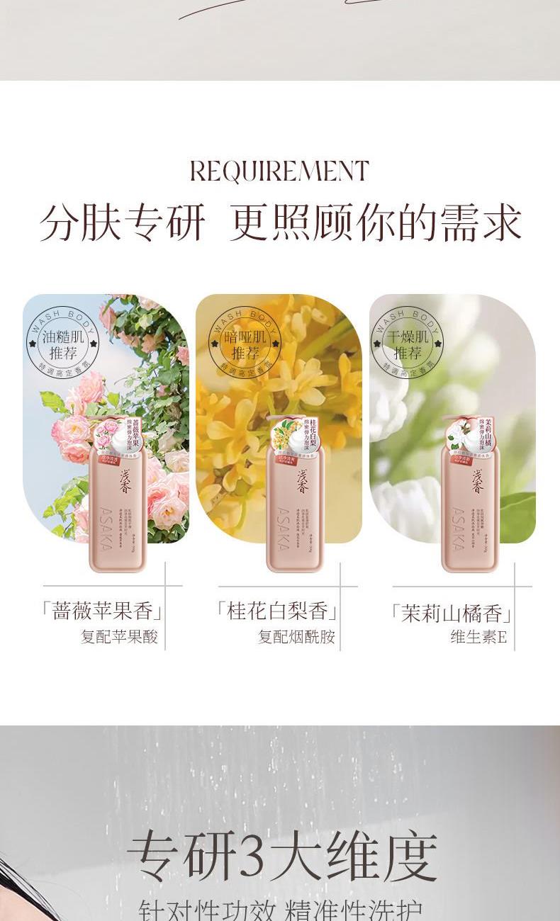 1、元气醒肤,惬享花果香,氤氲清香中浴见元气美肌。 2、专研皂基配方,绵密云朵浴毛孔级净澈。清洁力更强一冲即净,泡沫丰盈绵密柔和亲肤。 3、洗走疲倦浅香萦绕,开启愉悦身心之旅。桂花白梨香,如入桂花飘香的秘境,感受花香萦绕。